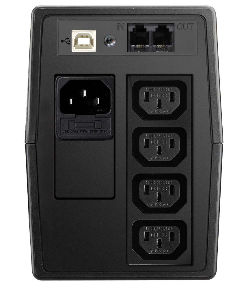 *Lüfterlos*, *Promopreis bis 31.1.2025*, inkl. Software Powershut Plus, PVC-Gehäuse schwarz, 360Watt, Autonomiezeit: bei 25%Last(22min),50%(8min),75%(1min),100%(0,5min), H142xB105xT300mm, Batterie 1x12V-7AH, Ausgang: 4xKaltgerätebuchse C13, Modifizierter Sinus, AVR-Automatic-Voltage-Regulation USB-Rechnerschnittstelle, Überspannungsschutz für Telefon Ein-/Ausgang RJ-11, Eingang: 1xKaltgeräte Stecker C14
